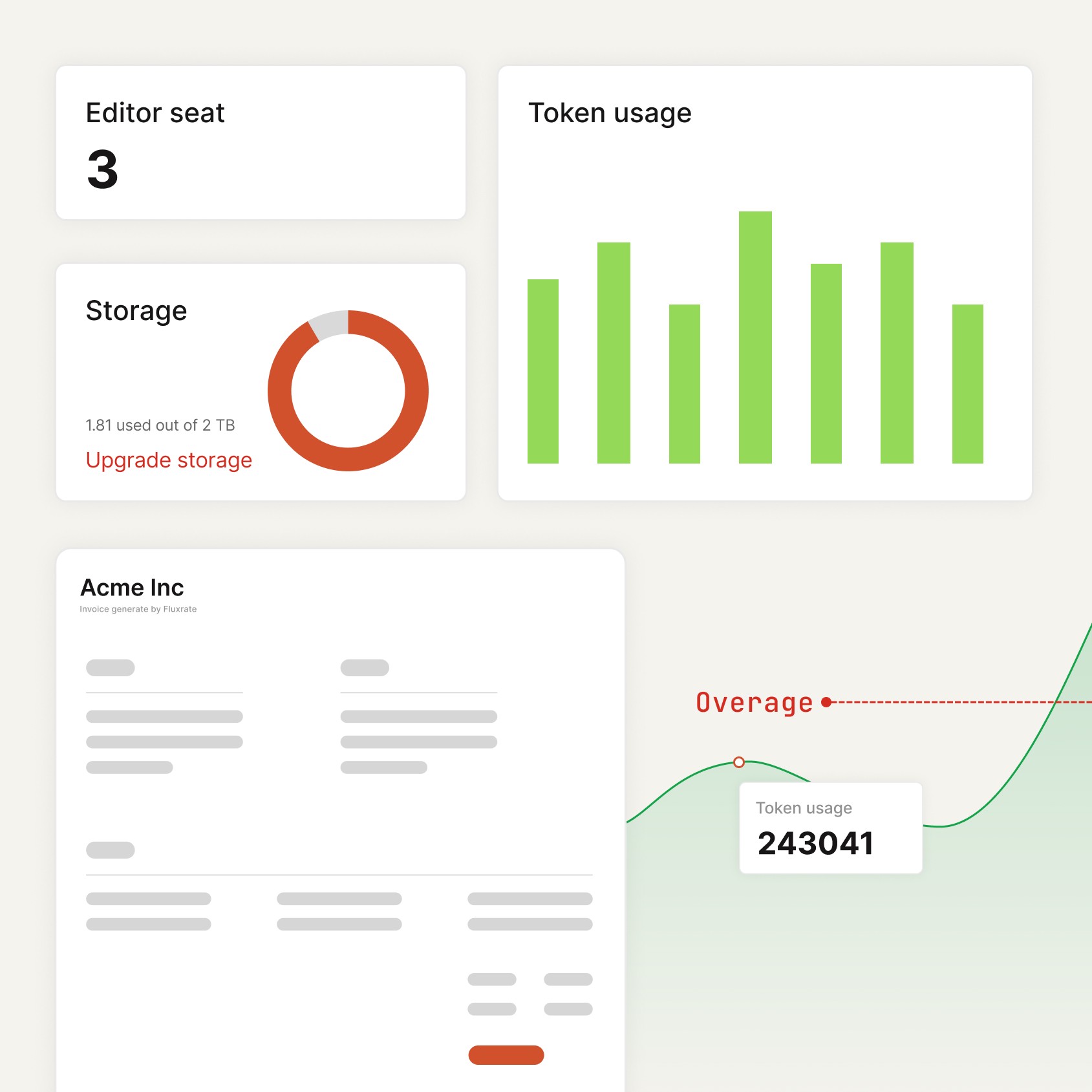 Fluxrate provide SaaS teams the infrastructure to price on what actually gets used — and the flexibility to change that model next quarter without touching your codebase. Because in AI, your pricing strategy will evolve faster than any rigid billing system can handle.